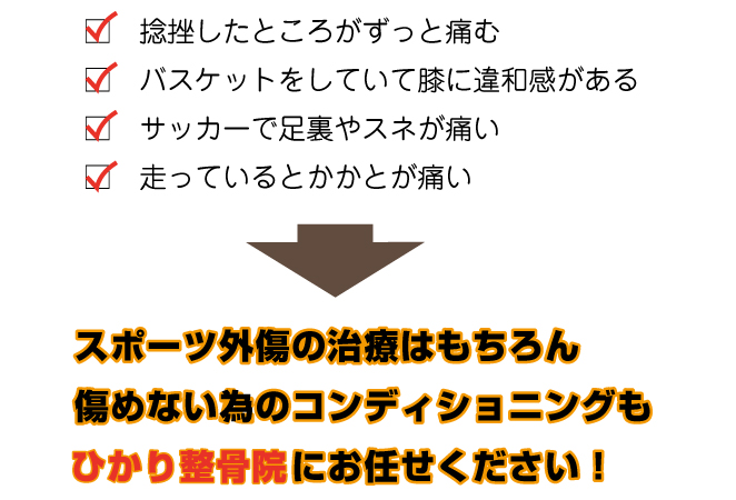 大阪府高槻市真上町のひかり整骨院では院長が長年バスケットの選手だったことから中学・高校・大学から社会人までのスポーツ外傷を改善させることができます。